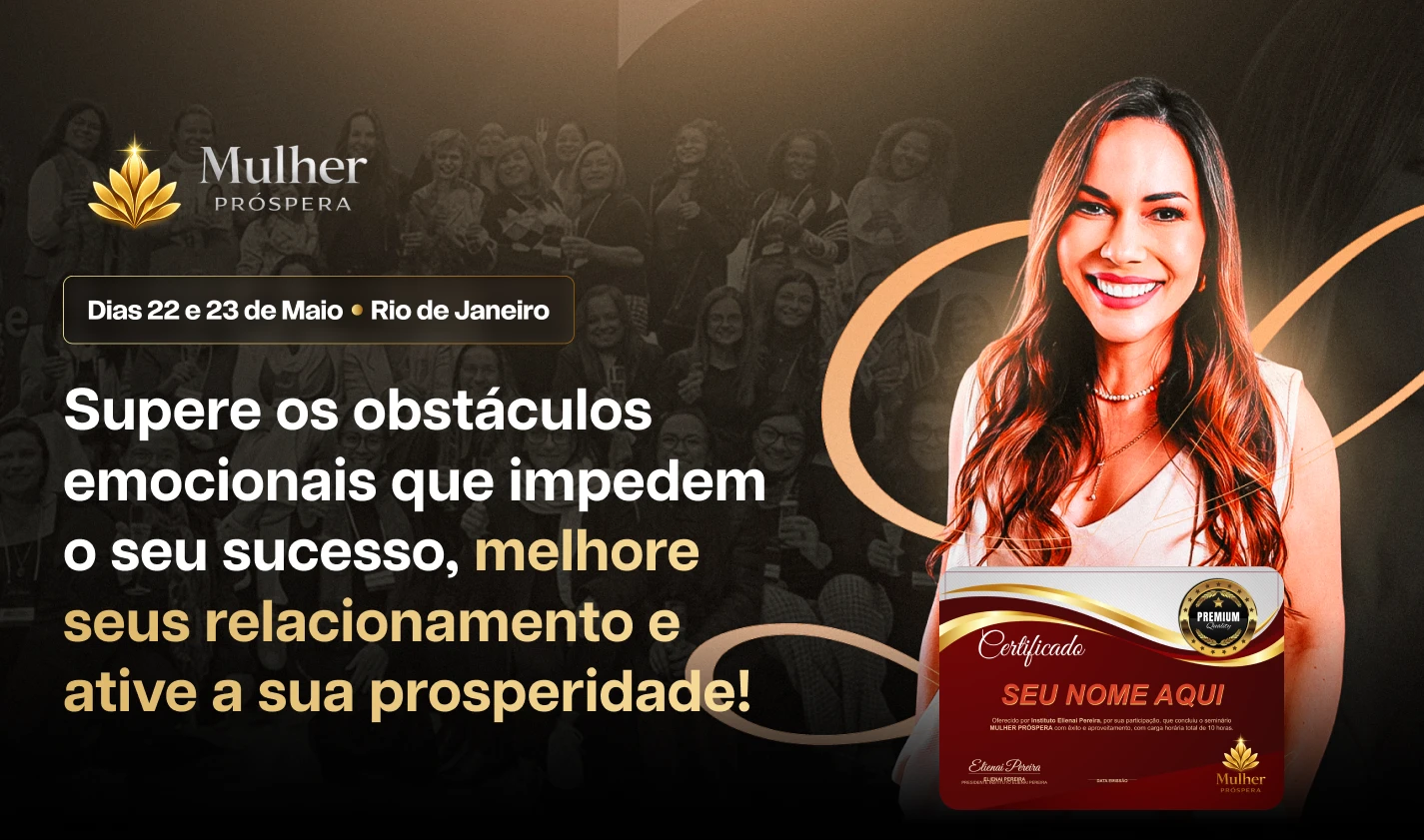 O Mulher Próspera é um evento 100% presencial, realizado no Rio de Janeiro. A experiência foi desenhada para acontecer ao vivo, sem gravações.